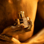Închisă într-un flacon auriu și luminos, fragranța întruchipează splendoarea opulenței absolute. Notele de vârf de mango, șofran și piersică strălucesc ca aurul lichid, dezvăluind un suflet și mai bogat și mai intens. În inimă, irisul și trandafirul înfloresc într-o îmbrățișare catifelată, învăluite de dulceața aurie a mierii, care oferă profunzime și o senzualitate captivantă. La bază, ambra, oud-ul și vanilia emerg într-o siaj bogat și persistent, o semnătură magnetică a puterii, eleganței și rafinamentului.